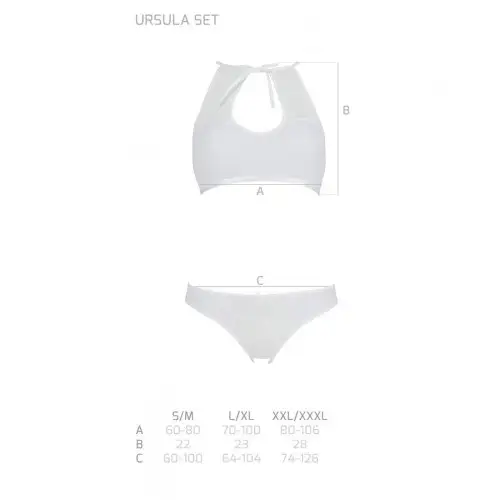 КОМПЛЕКТ Passion URSULA белого цвета станет прекрасным дополнением к вашей коллекции нижнего белья. Этот комплект включает в себя бюстгальтер и трусики с замысловатыми кружевными деталями и дизайном с открытой промежностью для дополнительного возбуждения. Набор доступен в размерах S/M, что делает его идеальным для большинства типов телосложения.