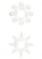 В набор входит 2 кольца, внутренний диаметр которых составляет 1,5 см, внешний диаметр – 2,3 см. Игрушка поставляется в двух цветах – черном и голубом. Изготовлены они из термопластичного эластомера, абсолютно безопасного для здоровья. Выпуклые шарики на одном, и шипы на другом кольце, обеспечат дополнительную стимуляцию влагалища партнерши. Нельзя использовать эрекционные кольца дольше 30 минут.