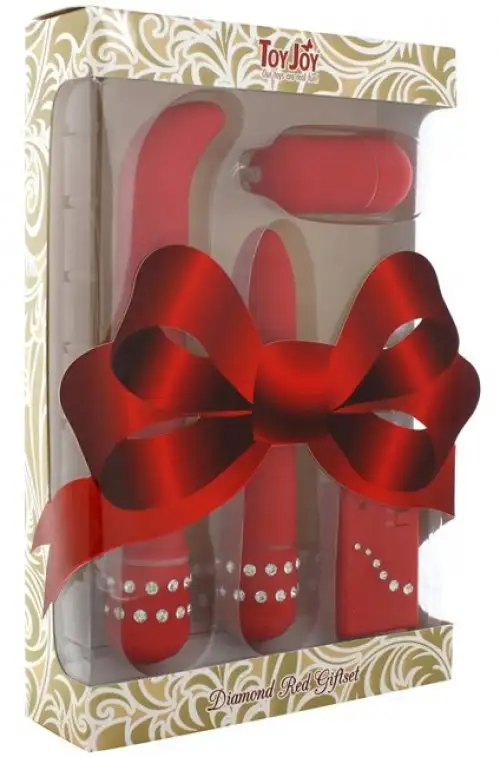 ПОДАРОЧНЫЙ НАБОР DIAMOND RED – идеальный романтический подарок себе или своему партнеру. Этот набор включает в себя вибратор для точки G, мини-вибратор и вибрирующее яйцо с дистанционным управлением. Все эти секс-игрушки украшены гламурными стразами, которые добавят элегантности вашим интимным моментам.