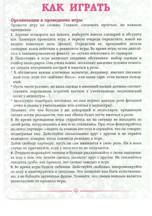 Помимо карт, в этой игре также есть рекомендации, как играть и как общаться с вашим партнером. Вы научитесь выражать свои желания, активно слушать и создавать безопасное пространство, в котором вам обоим будет комфортно исследовать новую территорию.