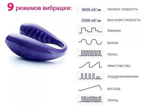 - наличие 9 режимов вибрации. Моторчики способны функционировать с удивительной скоростью – от 3000 об./мин. и 5000 об./мин.