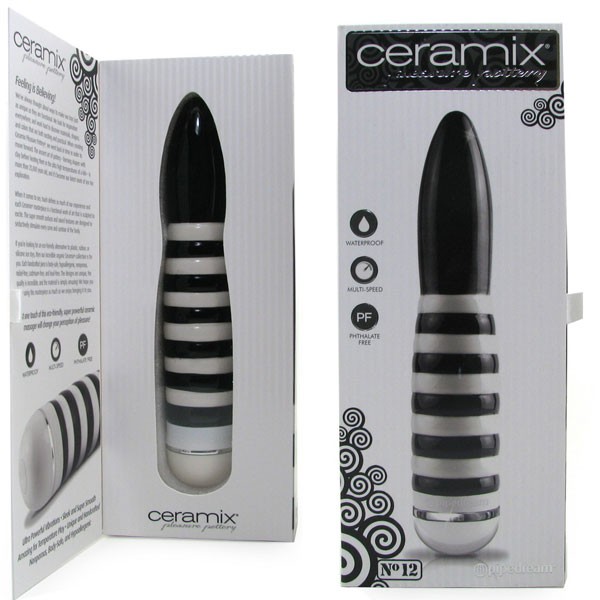 Вибратор керамика CERAMIX PLEASURE POTTERY 12. Можно нагреть или охладить под струей воды. Имеет 7 режимов вибрации, водонепроницаемый. Длина - 21 см, рабочая длина - 19 см, диаметр - 4 см.