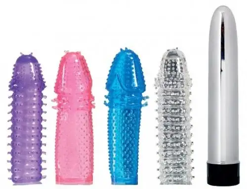 - Особенности - набор, состоящий из вибратора и четырех текстурированных насадок. Вибратор мультискоростной, с плавной регулировкой режимов вибрации.