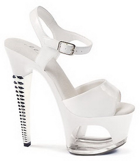 Женские босоножки белого цвета. Высота каблука - 15,0 см, высота платформы - 5 см.