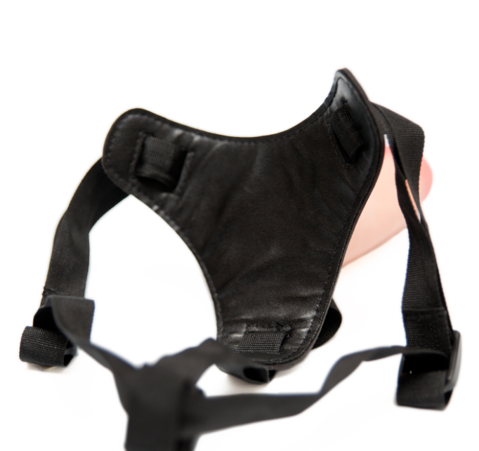 Удобная сбруя надежно удерживает игрушку на месте, регулируемые ремешки позволяют одевать страпон на большинство стандартных фигур (до 120 см). Даже, если вы будете двигаться очень интенсивно, хернесс останется там, где положено. Мягкая накладка из искусственной кожи, нежно прилегает к половым органам, не натирая их, не оставляя следов.