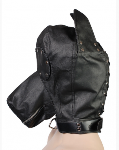 Изделие по форме напоминает собачью морду. Вытянутая мордочка и торчащие ушки дополняют этот образ. Чтобы ваш партнер не мог видеть, что его ожидает, можно пристегнуть накладку на глаза. В шлеме хорошо дышится благодаря отверстиям на мордочке. Если вы захотите получить оральные ласки, расстегните молнию на вытянутой части секс-продукта, освобождая рот партнера.