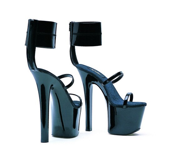 Женские босоножки чёрного цвета. Высота каблука 18,00 см.